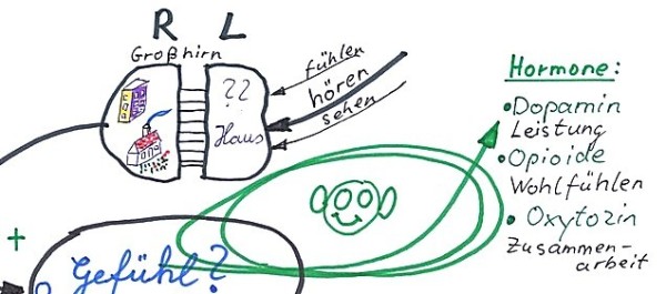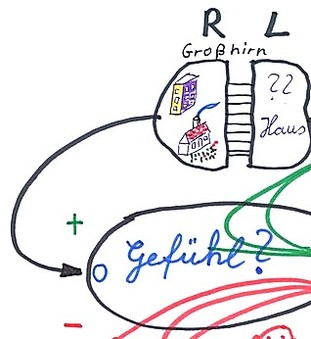 Nachdem aus dem gesprochenen Wort in der linken Gehirnhälfte ein Bild abgerufen wurde, wird nun im “Mittelhirn“ ein Gefühl hinzugefügt.
